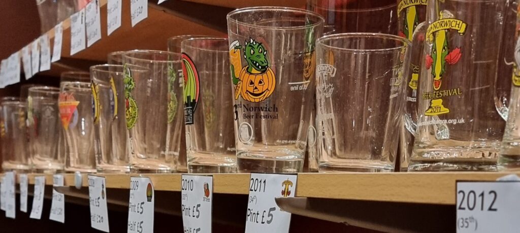 We are often asked if we would like to purchase collections of old Norwich Beer Festival glasses – unfortunately most of these are only worth a few pence, and we have examples of all but the oldest and rarest, pre-1980 glasses.
