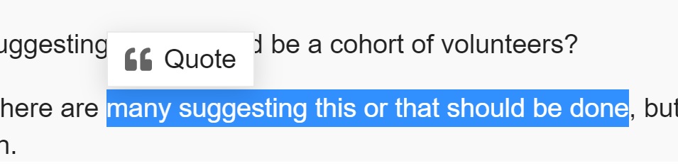 You can easily quote text from other posts as part of your reply, to make it clearer what you’re replying to – just highlight the text you want to quote, and click the “”Quote message, as shown below – the text will appear in your reply, on a shaded background. You can include as many quotes as you like in your message.