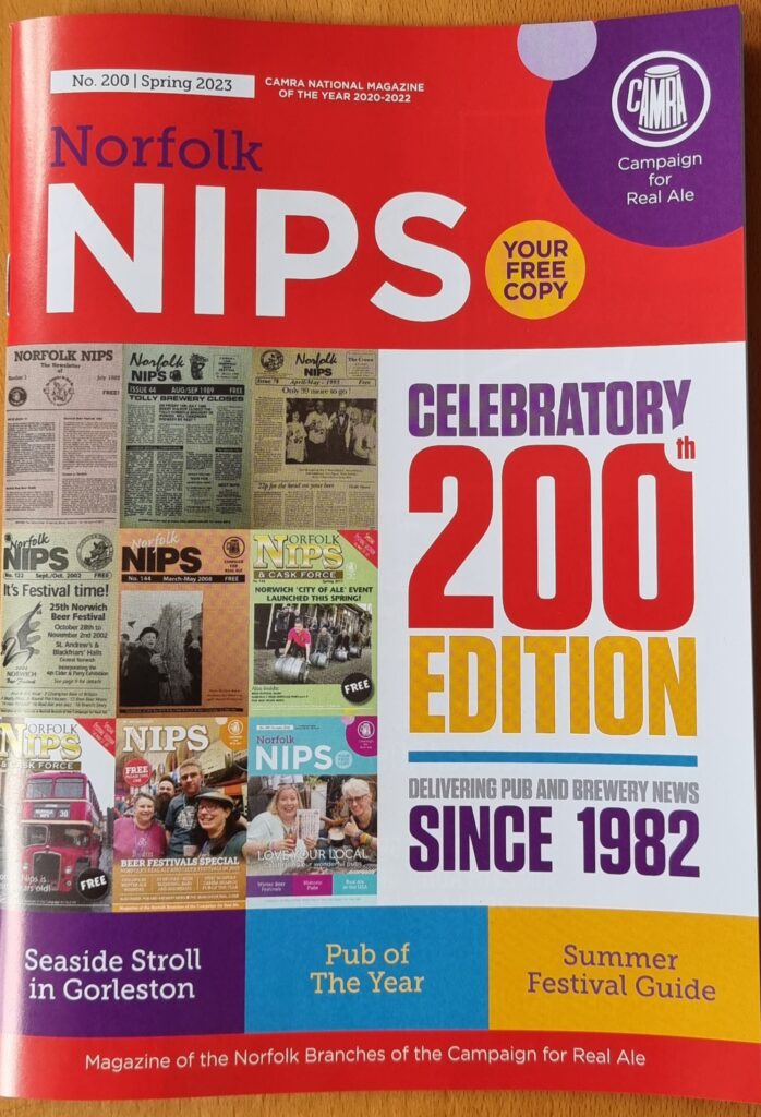 Over 13,000 copies of each quarterly edition of Norfolk Nips are distributed to nearly 300 pubs and clubs across Norfolk, and further afield, by volunteers, who are usually CAMRA members.