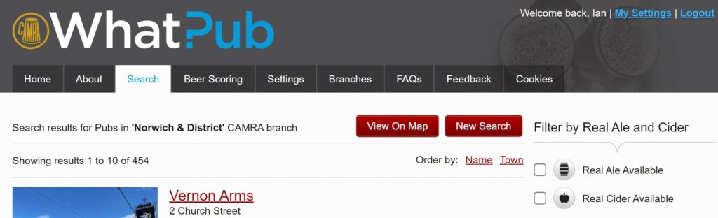 As a CAMRA member, you can log in and hide adverts, using the Settings tab, and submit beer scores, which will, for Norwich & District area pubs at least, be used in the Pub of the Year and Good Beer Guide selection processes.
